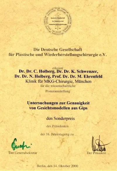 Im Jahre 2000 wurde auf der 38. Jahrestagung der Gesellschaft die Posterpräsentation “Untersuchungen zur Genauigkeit von Gesichtsmodellen aus Gips” mit dem Sonderpreis des Präsidenten der DGPW ausgezeichnet.